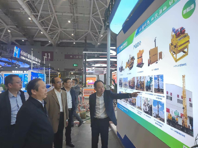 展會上,公司黨委書記、董事長王超宏向集團公司一行領導及觀展人員詳細介紹了參展設備的性能、主要特點及適用范圍。參展的HXY系列拖車鉆機組是專門針對砂巖鈾礦地質勘探和開采孔研制的升級產品,在人機協調、安全性、操控性能上得到了充分提高,杜絕了全液壓巖心鉆機功耗大、維修要求高的缺點,能夠滿足繩索取心的工藝要求。與國內外同類鉆機相比,在進尺速度、上下鉆速度、孔底壓力控制、鉆進參數顯示和控制方面具有顯著的特點。目前,該系列產品已廣泛應用于核工業203所、核工業243大隊、核工業208大隊等野外施工。
