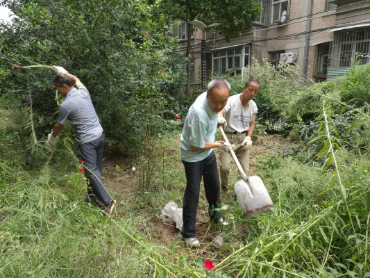 在清理過程中,不論是年齡大的還是年輕的,都是齊心協(xié)力,互相配合,干勁十足。清理垃圾、修剪樹木、拔草等各項(xiàng)工作井然有序。雖然中很臟、很苦、很累,但沒有一個(gè)人抱怨。