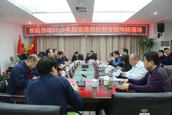 在考核現(xiàn)場,考核組通過查閱資料、詢問了解等形式,對公司2019年黨建工作、經(jīng)營業(yè)績、黨風(fēng)廉政建設(shè)、財務(wù)審計、精神文明建設(shè)及企業(yè)管理、安全生產(chǎn)、專項任務(wù)落實等方面工作進行細致了解并進行了考核打分,公司班子成員及各相關(guān)部門領(lǐng)導(dǎo)對考核組提出的問題做了認(rèn)真回答。隨后,檢查組各成員按部門對檢查結(jié)果進行匯報并提出意見建議,候總表示對年度綜合考核結(jié)果、核昌公司考核中自查發(fā)現(xiàn)的問題及考核中反饋的意見要進行梳理歸納、設(shè)計整改措施、確保整改到位,推進各項工作發(fā)展,并就核昌公司2020年黨建和經(jīng)營工作的發(fā)展提出幾點要求。