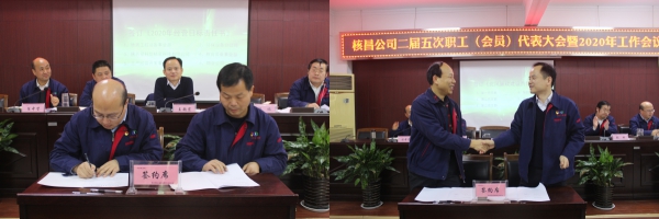 接下來會議轉(zhuǎn)為2020年工作會。首先由工會主席李偉傳達(dá)了集團(tuán)公司2020年職代會、工作會議精神及集團(tuán)公司董事長張斌成講話精神。其次,黨委委員、副總經(jīng)理張琳對2019年公司經(jīng)營考核結(jié)果進(jìn)行了通報(bào),紀(jì)委書記任中賢宣讀了《2019年先進(jìn)集體和個人表彰決定》,公司領(lǐng)導(dǎo)對獲得先進(jìn)的集體和個人進(jìn)行頒獎。黨委副書記、總經(jīng)理?xiàng)钫?span>與各事業(yè)部負(fù)責(zé)人簽訂了《2020年經(jīng)營目標(biāo)責(zé)任書》,黨委書記王超宏分別與各黨支部書記簽訂《黨風(fēng)廉政建設(shè)責(zé)任書》,與公司工會簽訂了《工資集體協(xié)商協(xié)議書》、《女職工特殊權(quán)益保護(hù)專項(xiàng)合同》。隨后,對中層干部進(jìn)行了民主測評。