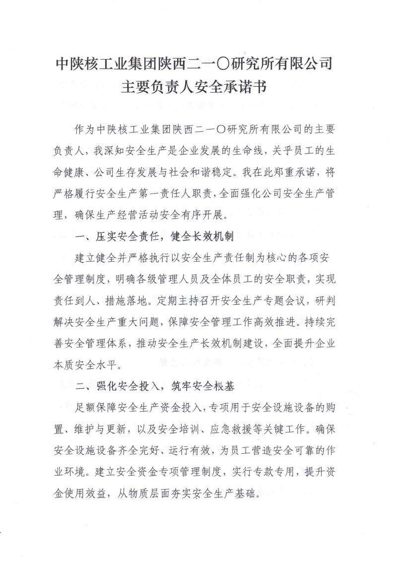 二一〇所主要負責人安全承諾書